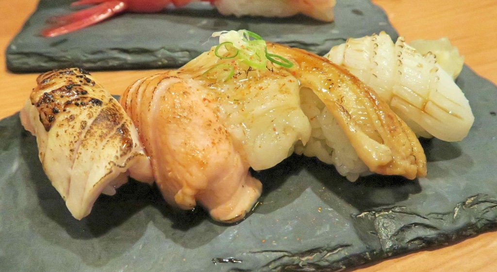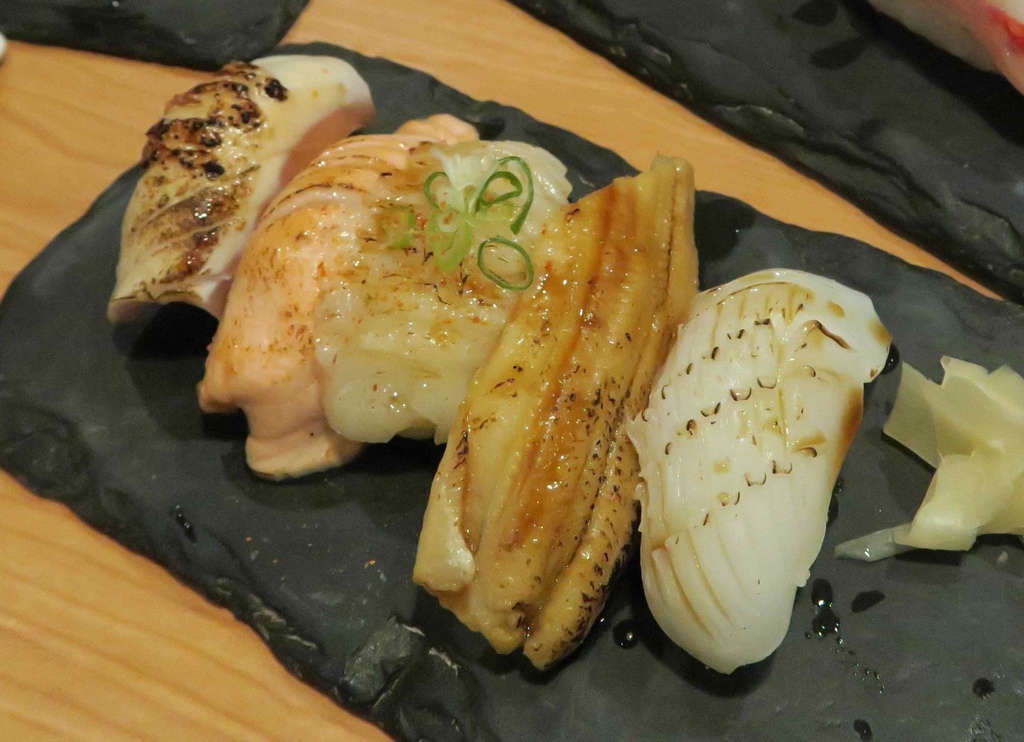 魚肉經炙燒方式處理,比起純吃生魚片,更多了炭火香氣