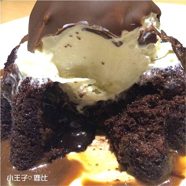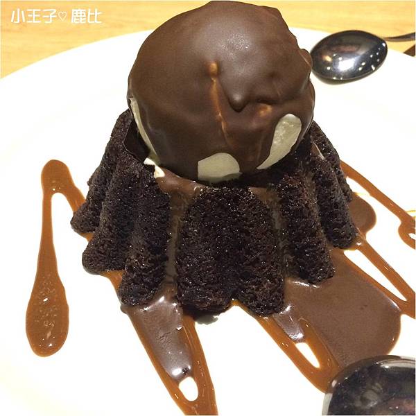 巧克力蛋糕+內餡濃郁的巧克力醬+冰上巧克力脆皮