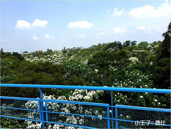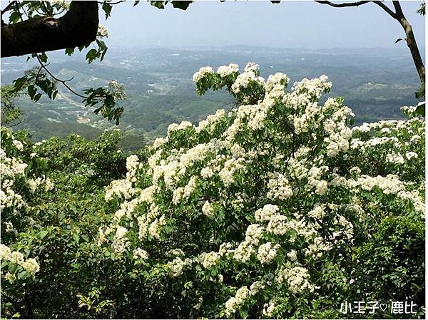 左右兩旁都是開得雪白的桐花,向遠方眺望也是一片白花海海耶!