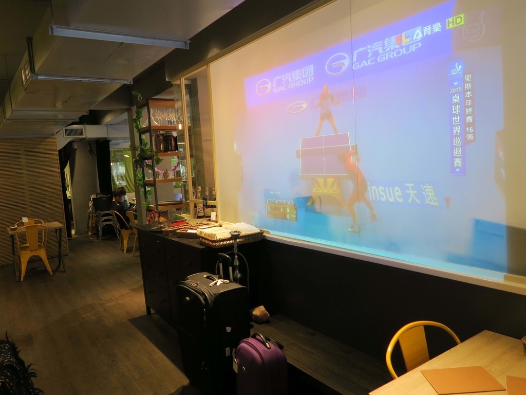 店內還有投影螢幕,螢幕下方則有空間擺下朋友的誇張大行李XD