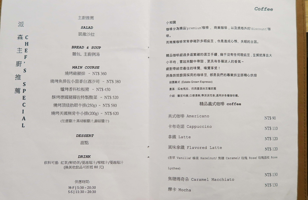 因為派森不收服務費,所以看完喜歡的餐點後
