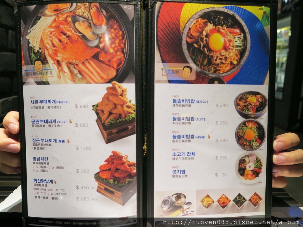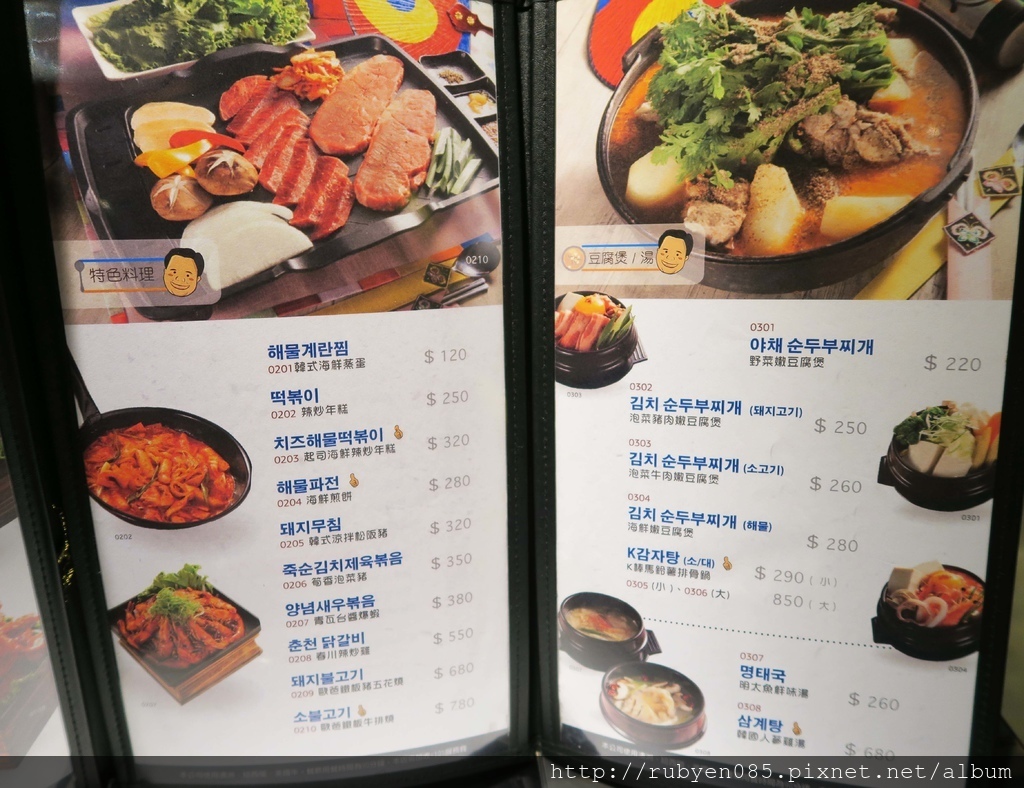 菜單上,韓式經典的部隊鍋、辣炒年糕、辣炒雞
