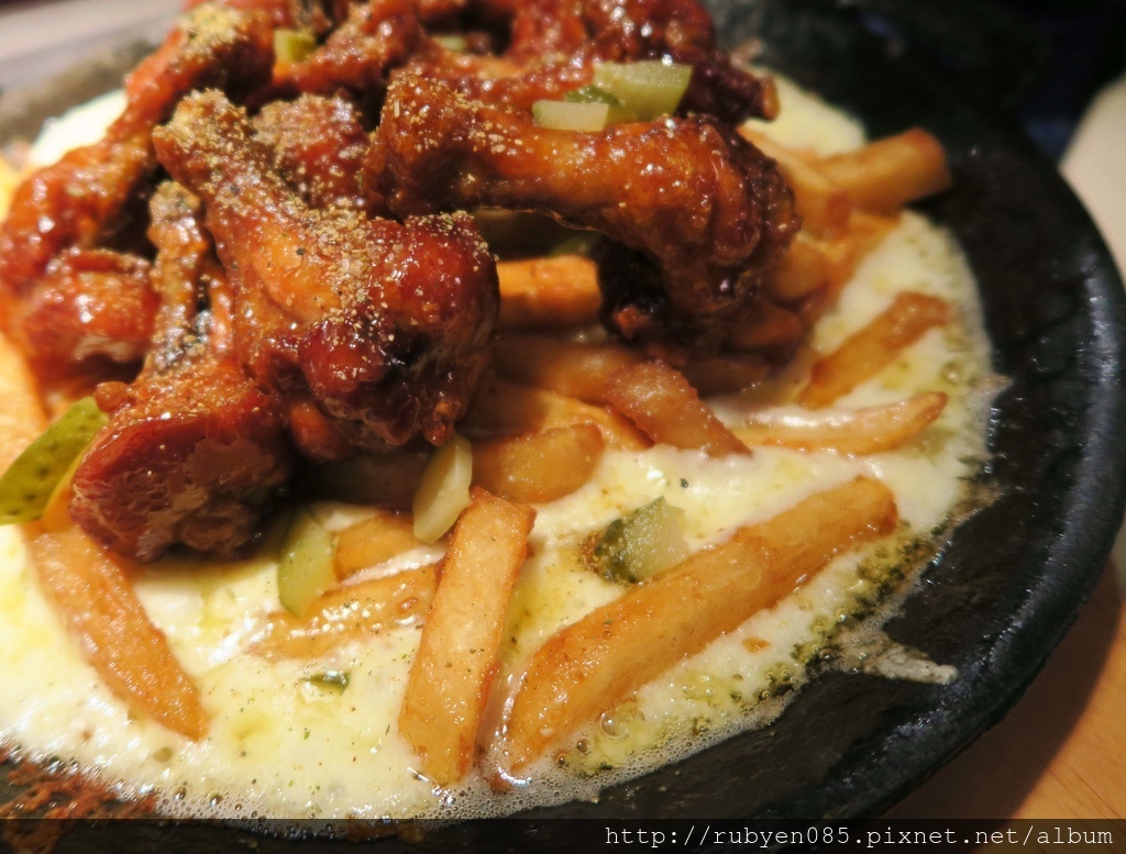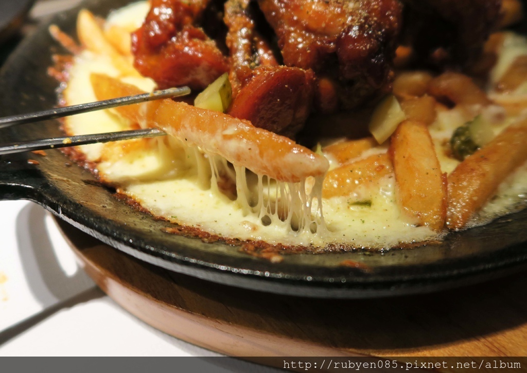 炸的金黃香酥的薯條加上底部厚厚的起司,拉起來超級牽絲