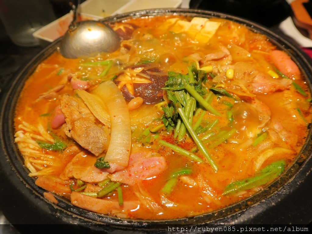 士官部隊鍋+起司脆薯炸雞+海鮮蒸蛋+牛肉石鍋拌飯+點滴飲料*2