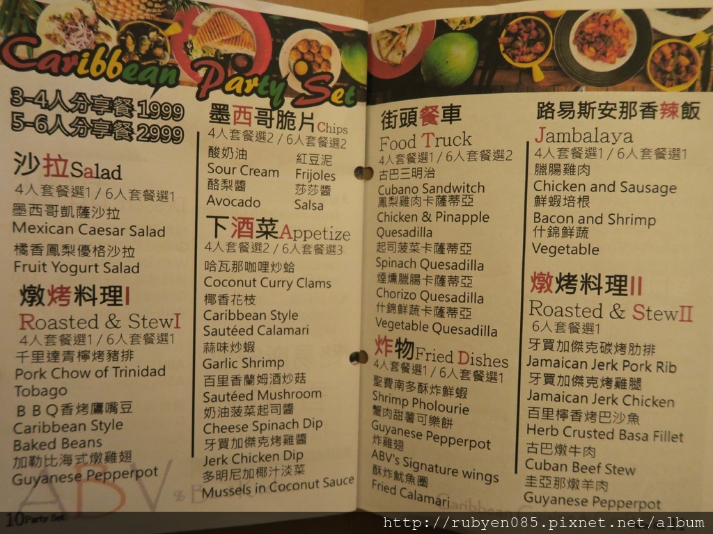 今日最終口袋3-4人分享餐菜單:橘香鳳梨優格沙拉+墨西哥玉米脆片+酥炸魷魚圈+經典古巴三明治+百里香萊姆酒炒菇+哈瓦那咖哩炒蛤蠣+路易斯安娜香辣飯(鮮蝦培根)+加勒比海式燉雞翅