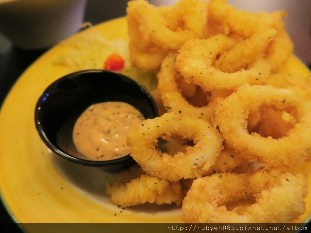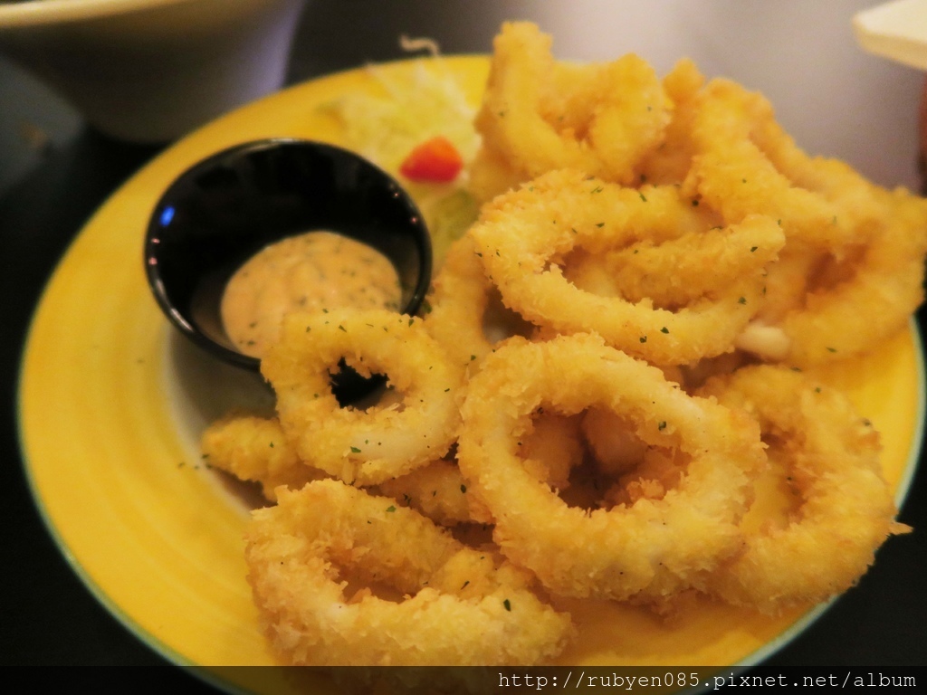 魷魚肉質也很很鮮嫩,軟軟QQ的,配着一旁微酸的沾醬吃更是美味