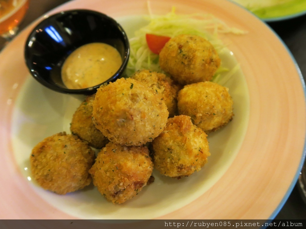 應該是一顆顆馬鈴薯泥混著蟹肉下去炸