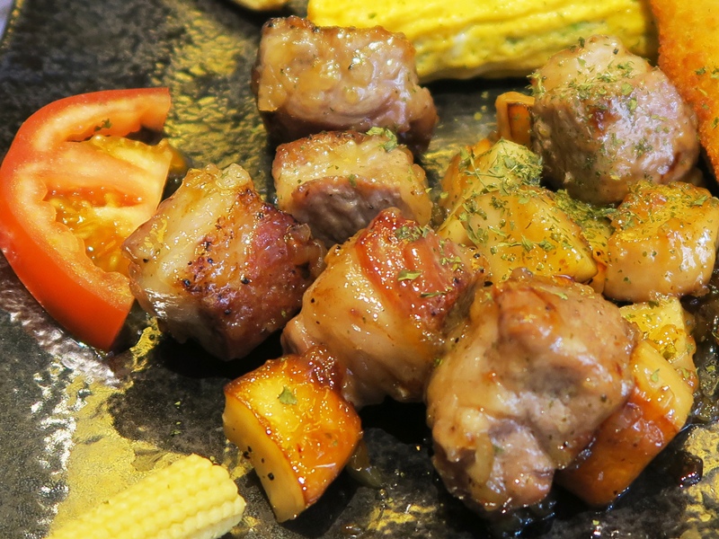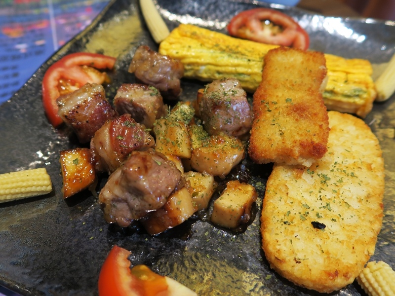 讓我更驚豔的是調製配方,豬肉外層帶有濃稠醬汁,吃起來甜甜鹹鹹