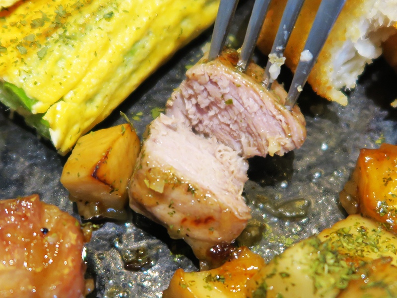 豬肉切開中間還是粉紅色,真的又嫩又彈又美味