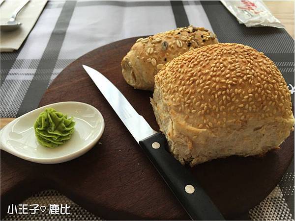 吃得到麥香的紮實麵包+香草醬,附上一把刀子的作風還真豪邁~