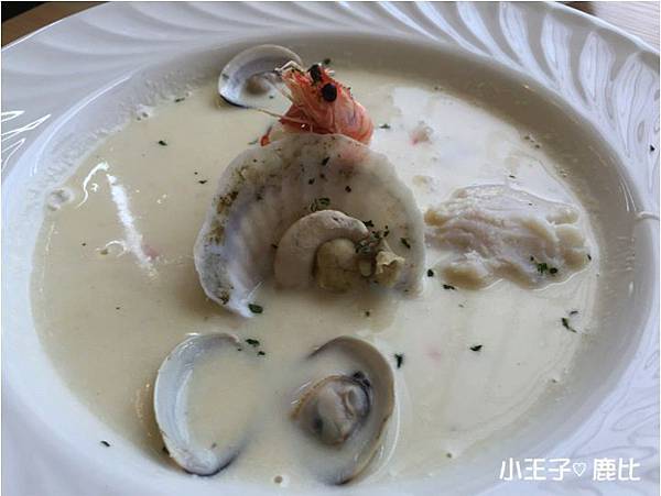 濃濃的奶油湯頭,搭配鮮魚、蛤蠣、鮮蝦跟扇貝