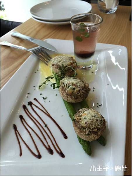 而配菜表現也不馬虎,蘑菇底下墊著的蘆筍又大又嫩