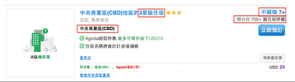 但缺點就是在還沒有真正訂房付錢時,看不到飯店名稱、完整地址、房間照片等資訊