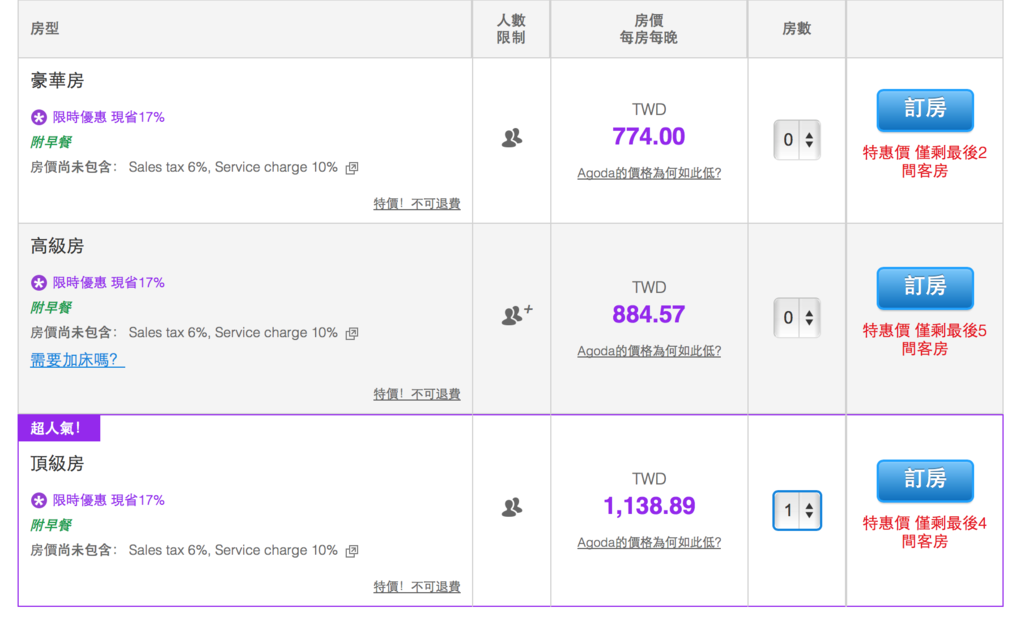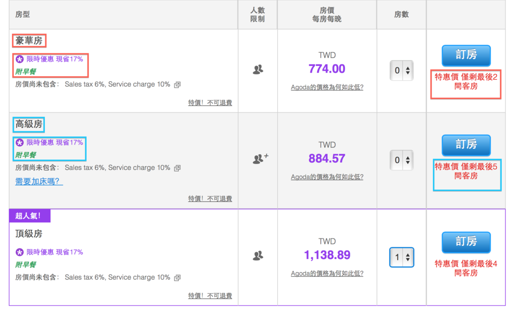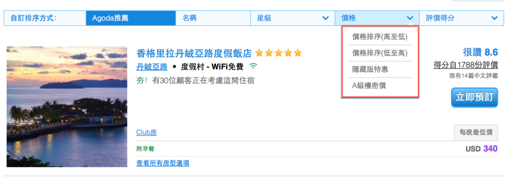 在談A級機密價前,先了解agoda訂房網站上價格共有四種