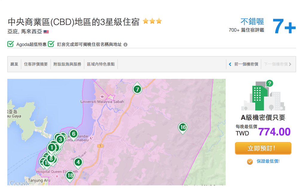 在當時查尋沙巴飯店,接近觀光地點的飯店至少都要1000元起跳